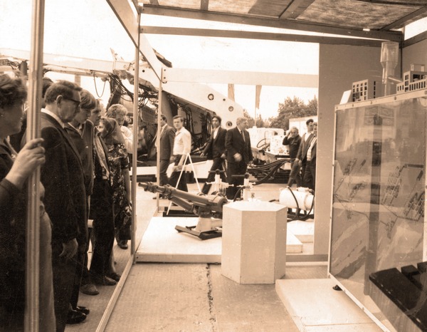 Экспонаты кафедры: импульсный гидромонитор для подземной гидродобычи угля и макет шахтного эрлифтного гидроподъема горной массы на международной выставке "Уголь-83", г. Донецк, 1983 г.